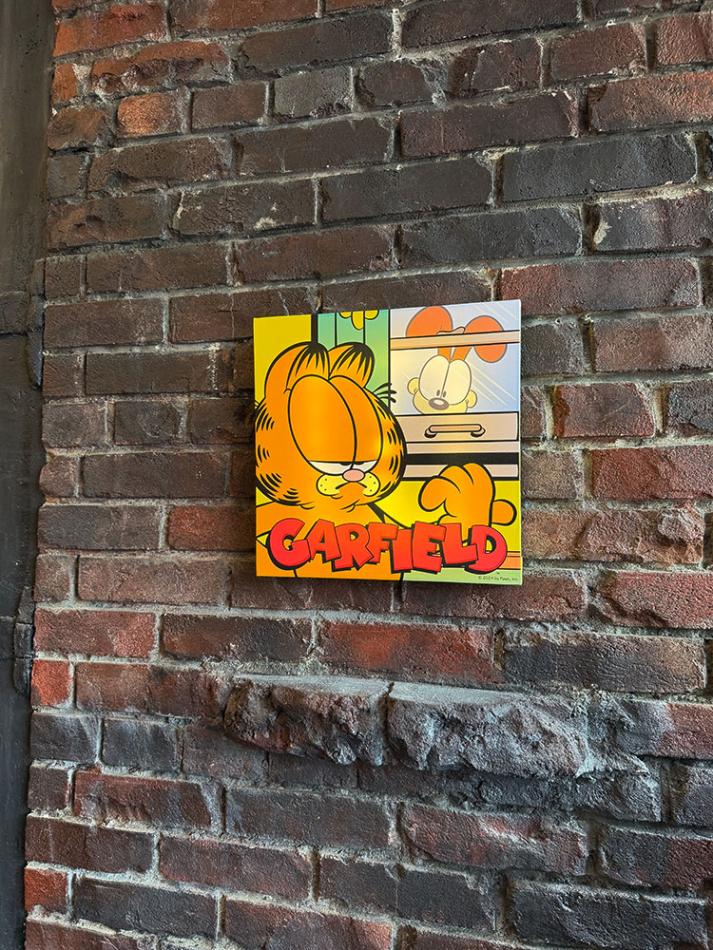 キャンバス素材だから、ツルッとした看板よりもラフで、ガーフィールドの少し抜けたキャラクターと相性抜群だし!