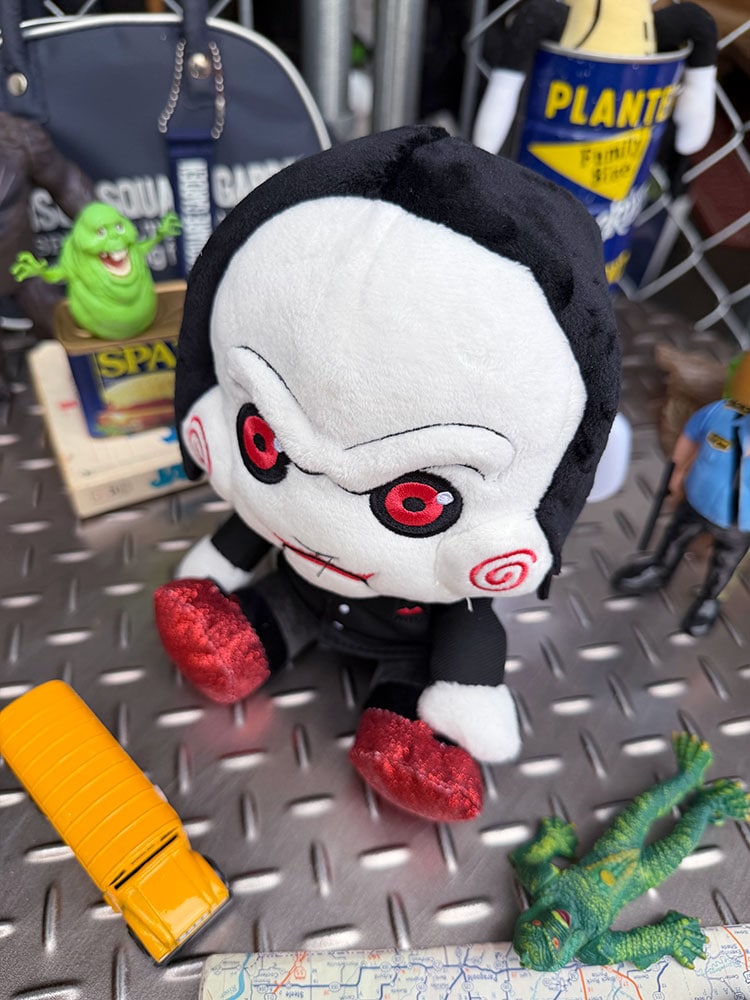 ホラー映画史に名を刻むソウシリーズの象徴的存在、ビリー(ジグソウ人形)をモチーフにしたぬいぐるみです。