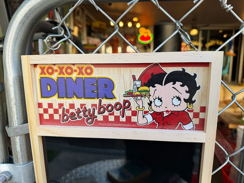 ベティ・ブープが看板ガールを務める、チョークボード付きウッドサインが入荷しました。