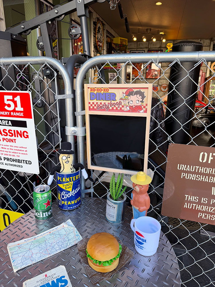 赤×白のチェッカー柄、ポップな“DINER”ロゴ、そしてハンバーガーを片手にしたベティ。