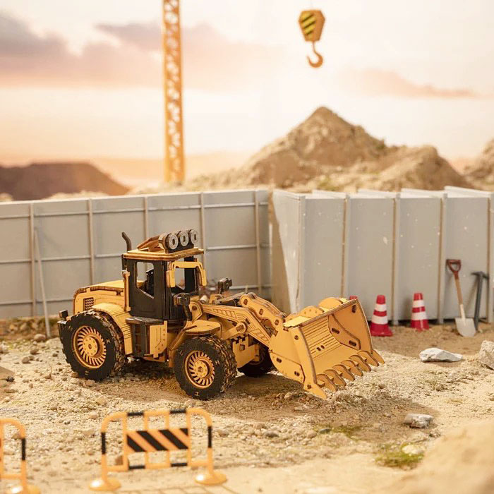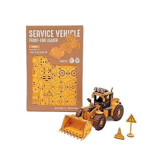 つくるんです! 働く乗り物シリーズ 3Dウッドパズル フロントエンドローダー DIYキット (日本語説明書付き) 塗装不要 ホイールローダー