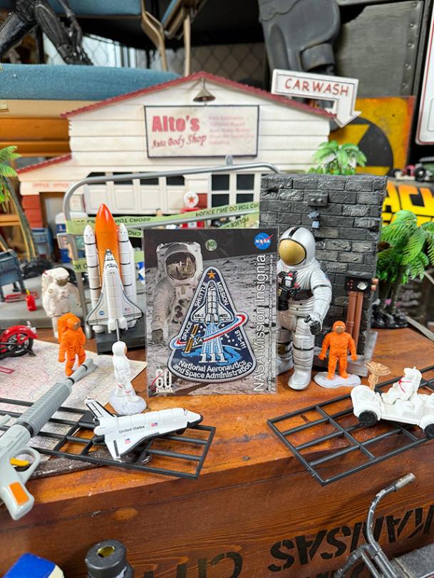 小さな刺繍パッチに、宇宙服やシャトル、ミッションの物語がギュッと詰まってる。