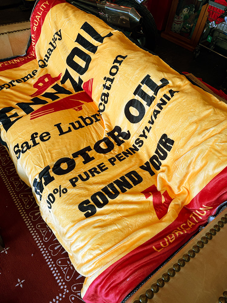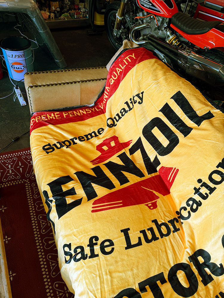 今日の主役は、布なのにオイル臭がしてきそうな錯覚を起こす ペンズオイル フリースブランケット。