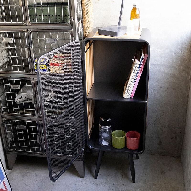 ※こちらはウッド&アイアンメッシュキャビネット(2段タイプ)の販売ページです。画像に一緒に写ってますメッシュロッカー(5段タイプ)は別売です。