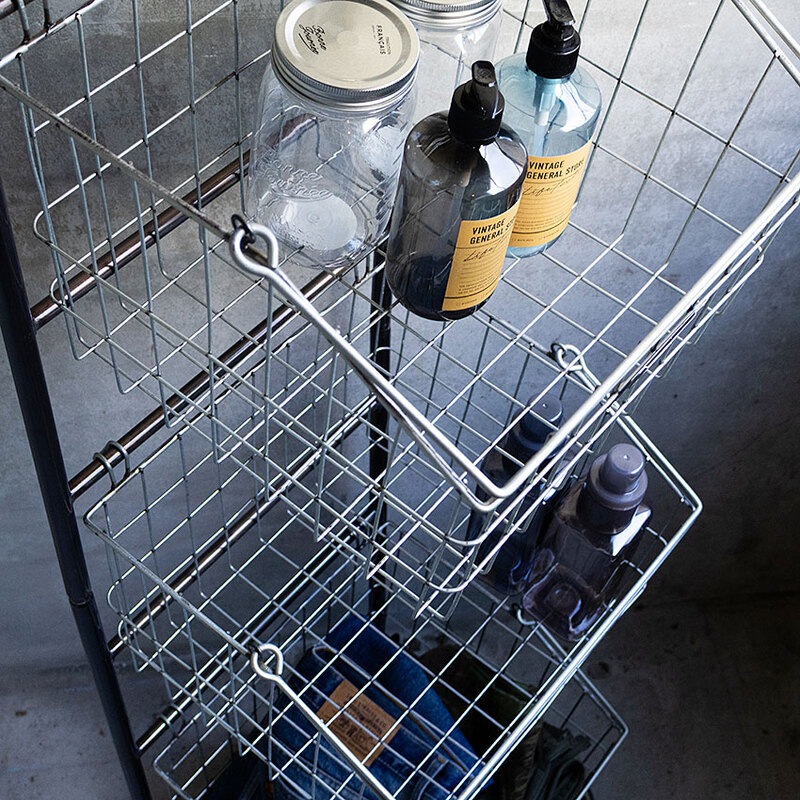 スチール独特のラフな溶接跡、武骨なワイヤーの表情、アメリカのジェネラルストアの裏で働いてそうな雰囲気──