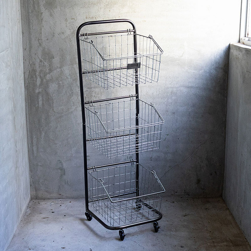 ミリタリーテイスト 3段ワイヤーラック キャスター台付き 全国送料無料(沖縄・離島除く) 秘密基地系ファニチャー FML