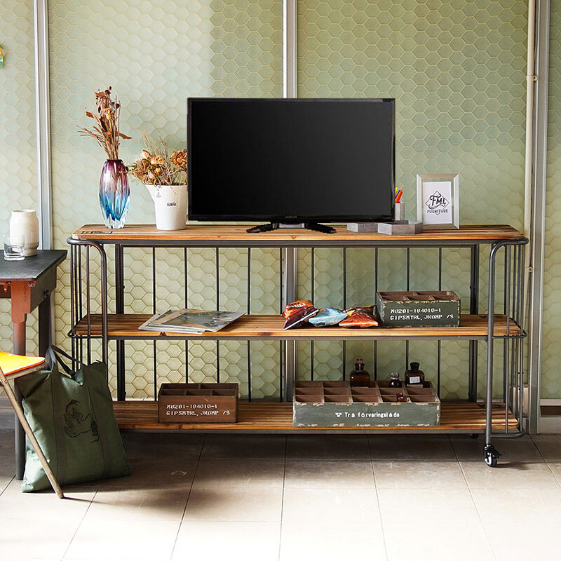 ミリタリーテイスト ウッド&アイアン 3段シェルフ (横幅160cmワイドタイプ) 全国送料無料(沖縄・離島除く) 秘密基地系ファニチャー FML